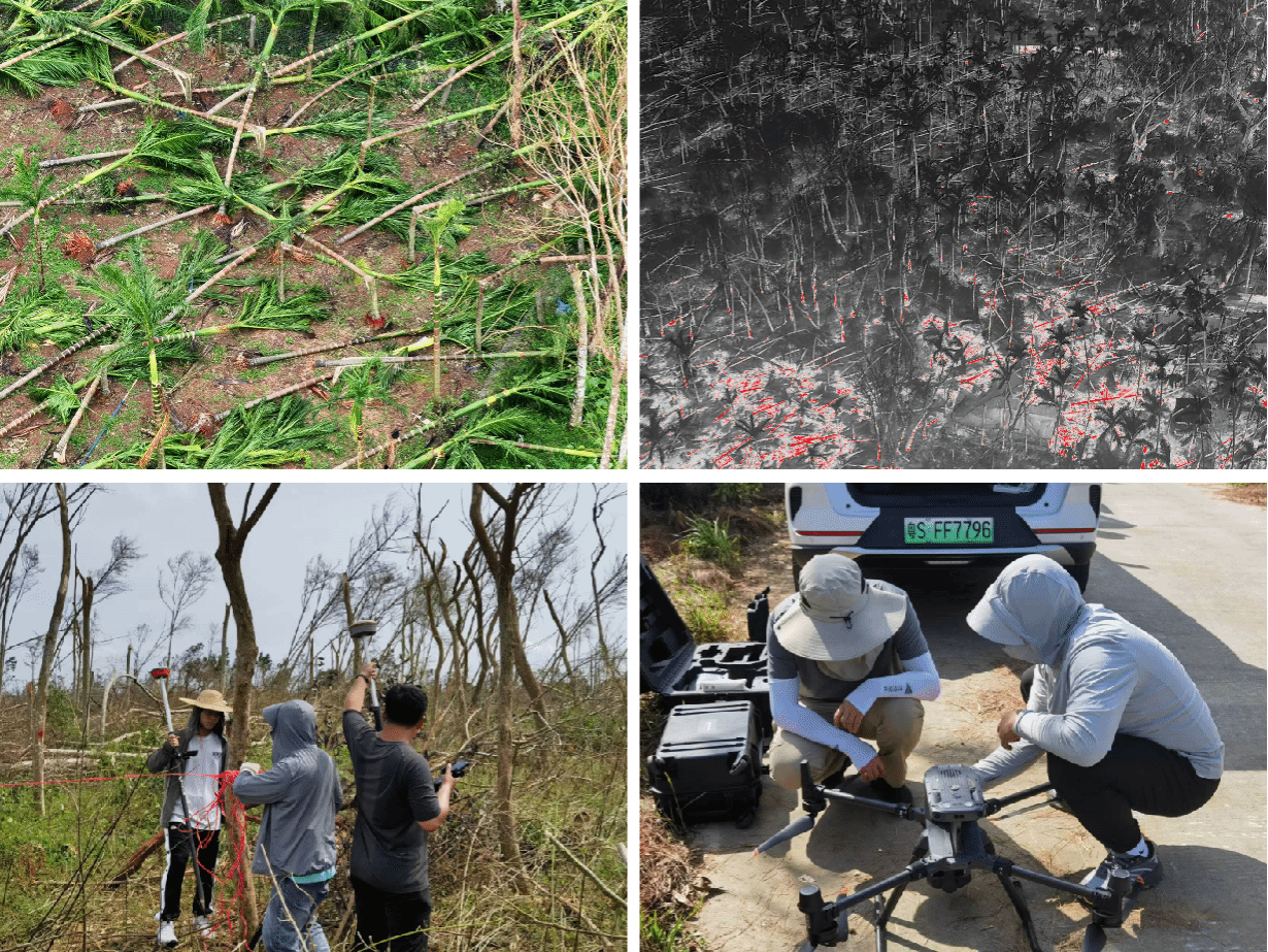科研人员在灾后一个月的时间里,发扬“海南有需求、海大有作为”的精神,克服停水、断电、断网、断路等困难,深入灾区一线,收集了一批十分宝贵的第一手资料;结合卫星遥感、激光雷达、地面航拍和实地调查,对城市园林绿地、热带雨林、人工林(含经济林)、红树林、海草床、自然保护区、长臂猿种群及栖息地、种植业、养殖业和渔业等台风受损情况进行了初步评估,积极主动对接海南省主管部门,为生态环境应急减灾提供初步评估报告和建议。