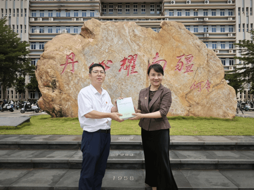 这是省发改委资环处向环境公司赠送《海南省碳达峰碳中和文件汇编》书籍。陈彪 摄