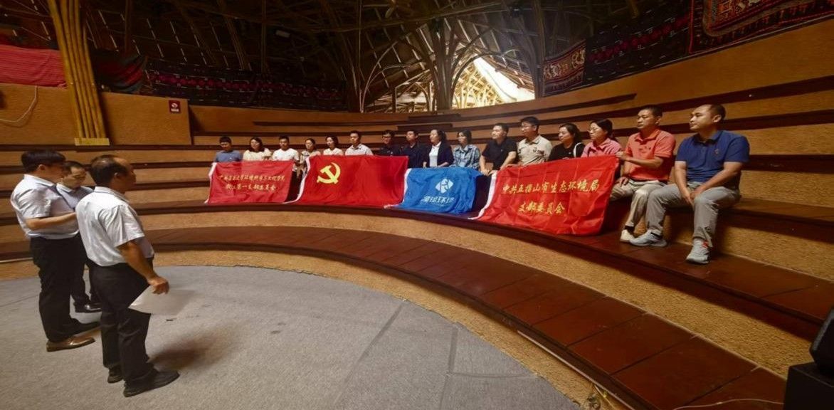 活动的最后环节,三方党支部在毛纳村举行了联合主题党日学习会。与会党员集中学习了习近平总书记关于生态文明建设的重要论述精神,重点围绕“绿水青山就是金山银山”理念、人与自然和谐共生的现代化、生物多样性保护、实现“双碳”目标等核心内容进行了深入学习和研讨。大家结合白沙起义的革命精神、热带雨林保护的实践挑战以及毛纳村生态产业发展的成功经验,畅谈学习体会,交流工作思路。通过联学,进一步深化了对习近平生态文明思想核心要义和实践要求的理解,凝聚了以党建引领推动生态环境保护工作的共识。