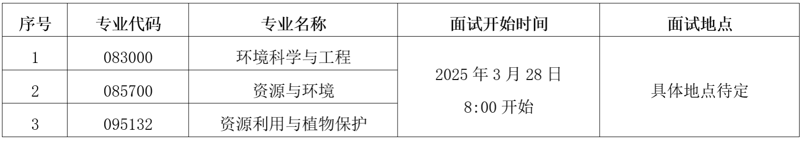 参加复试考生需满足各学科专业的复试分数基本要求,通过复试资格审查。复试采取差额形式,复试比例为120%。环境科学与工程(学硕)、资源与环境(专硕)因上线人数低于公布的招生计划数,所有满足相应学科(类别)教育部公布的《2025年全国硕士研究生招生考试考生进入复试的初试成绩基本要求》(B类考生)的考生均参加复试。