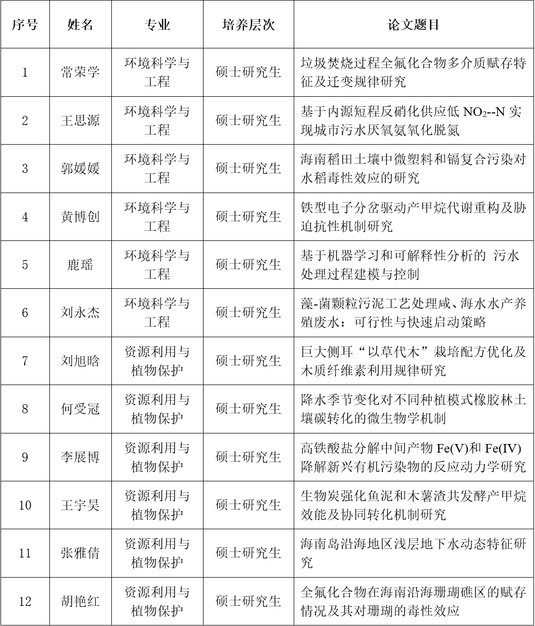 答辩研究生名单如下: